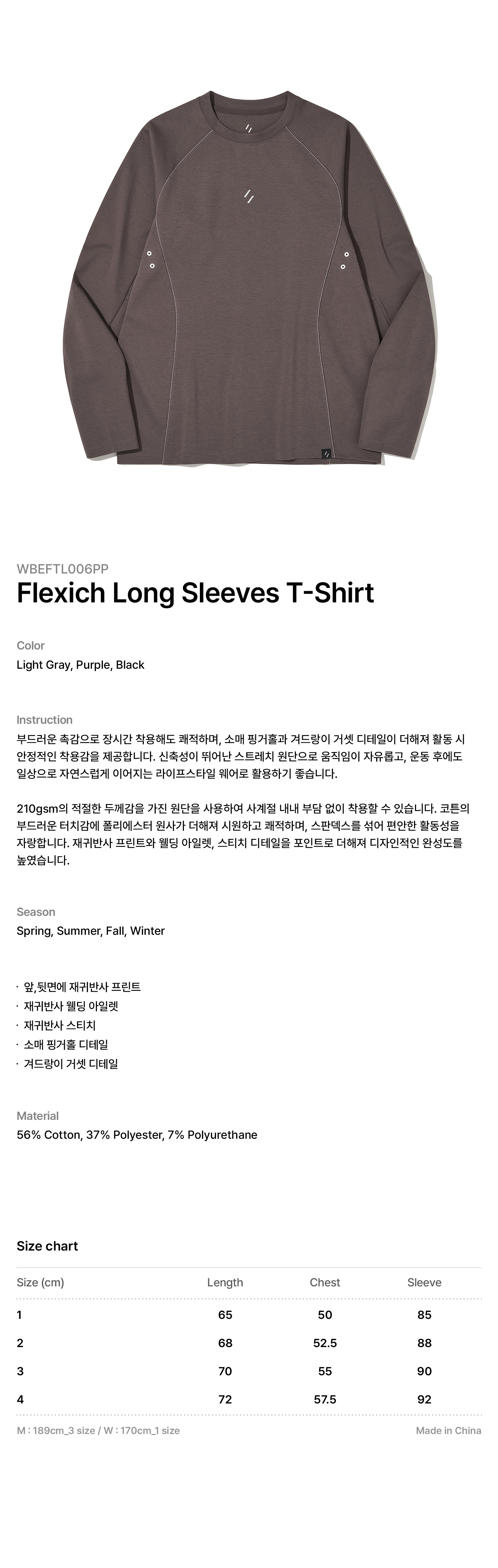 부드러운 촉감으로 장시간 착용해도 쾌적하며, 소매 핑거홀과 겨드랑이 거셋 디테일이 더해져 활동 시 안정적인 착용감을 제공합니다. 신축성이 뛰어난 스트레치 원단으로 움직임이 자유롭고, 운동 후에도 일상으로 자연스럽게 이어지는 라이프스타일 웨어로 활용하기 좋습니다.
