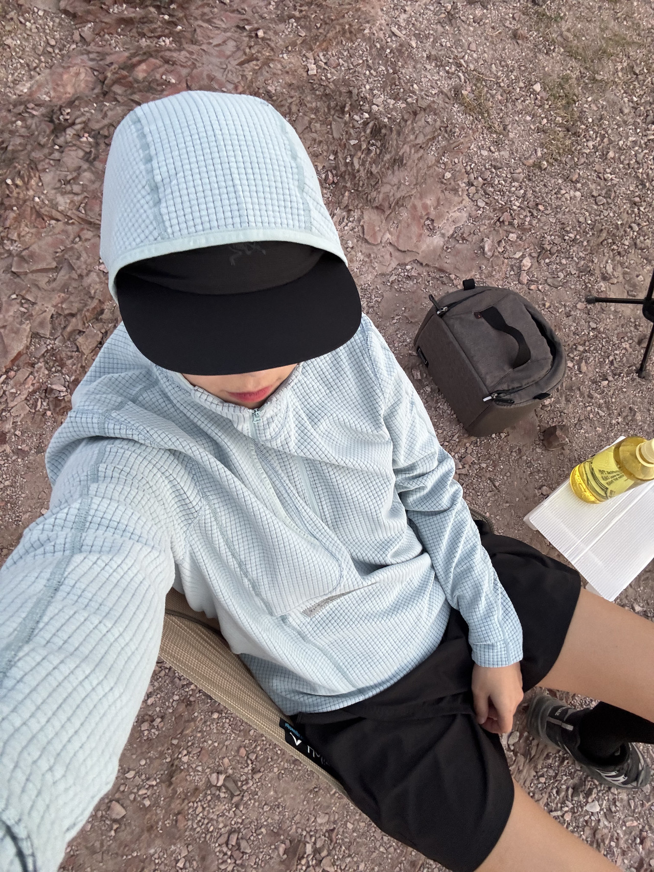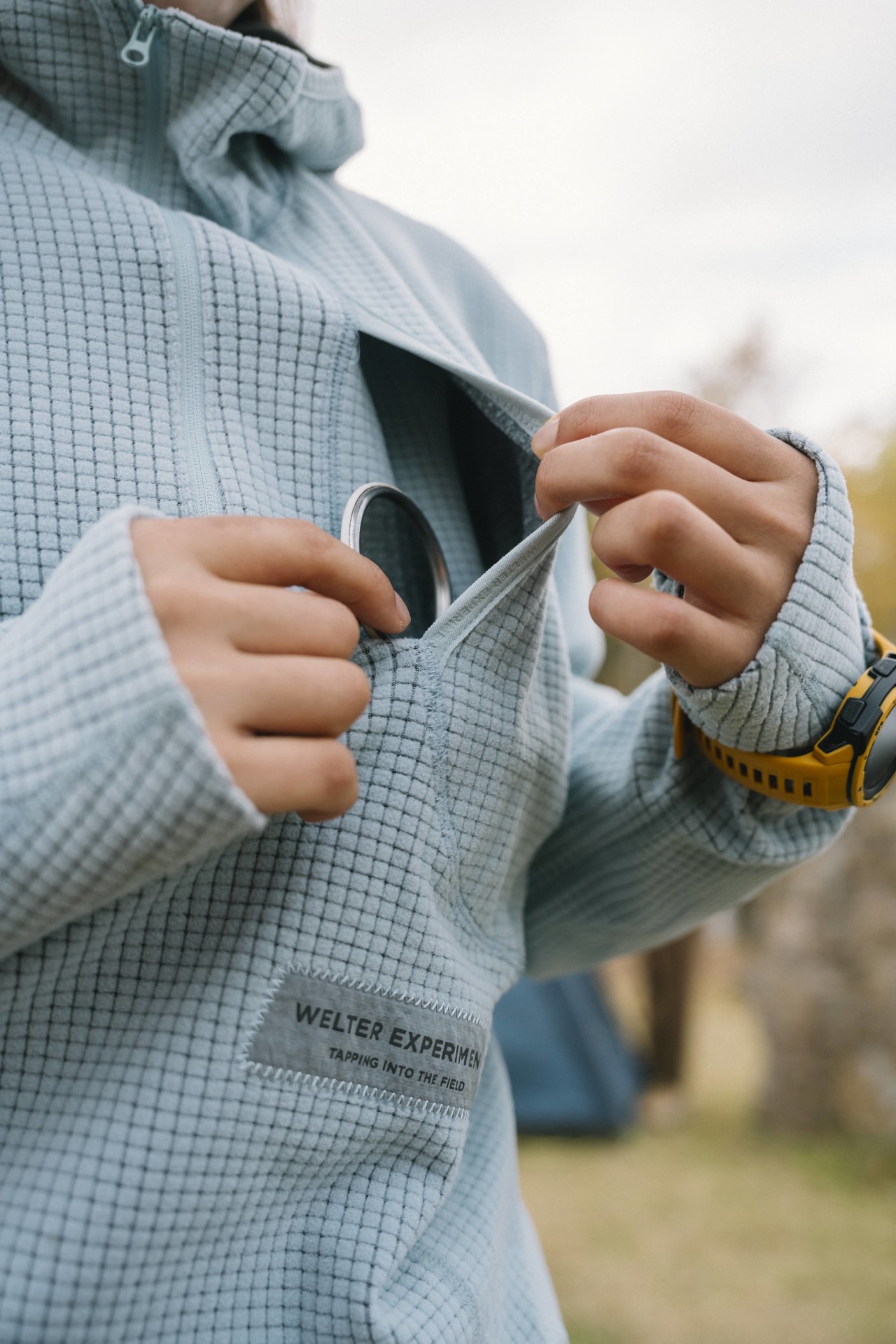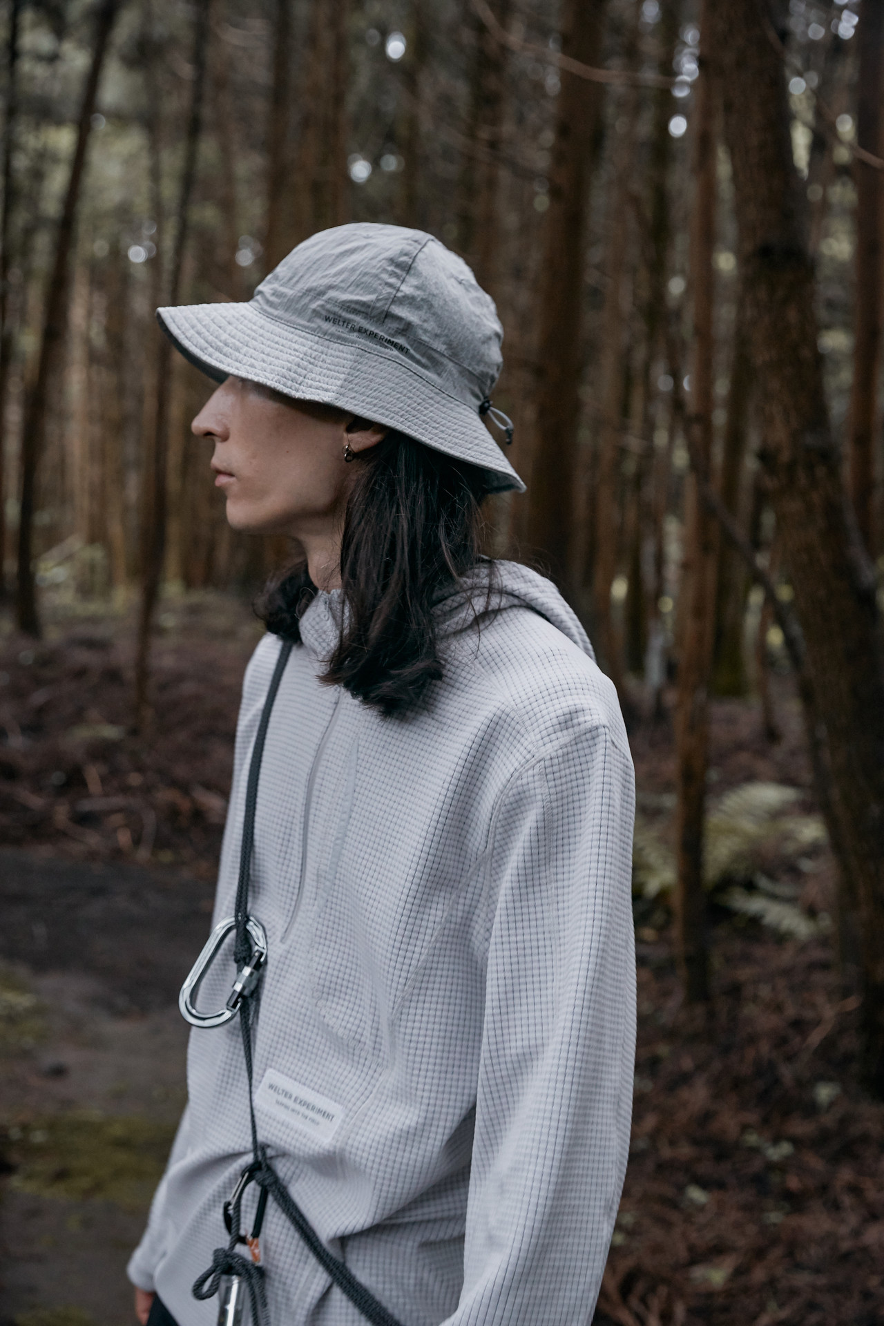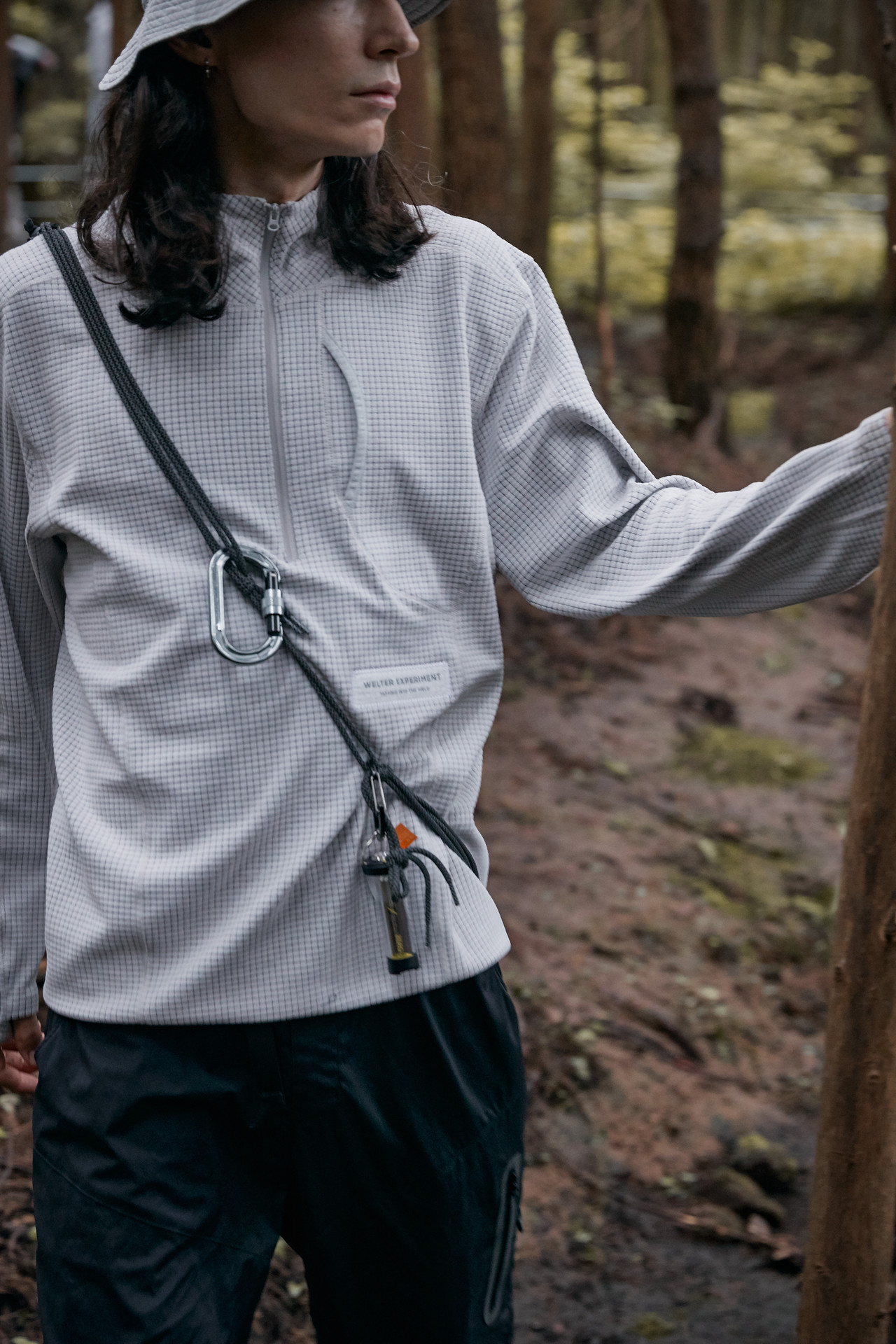 웰터 익스페리먼트의 스테디 아이템, SQUARE FLEECE HOOD PULLOVER 입고.