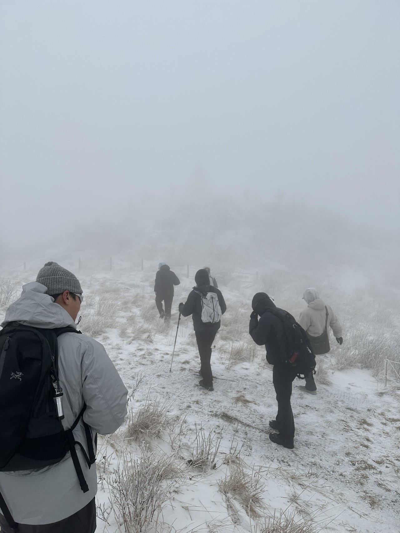 겨울 산행은 때로 긴장과 고민의 시간으로 잠을 설칠때가 있습니다. 함백산으로 향하던 날, 하늘은 햇살 한 점 허락하지 않은 채 묵직한 잿빛으로 내려앉아 있었습니다. 사람들은 옷깃을 최대한 여미고 시선을 땅으로 떨군 채 차가운 공기 속에서 각자의 고립된 온기를 찾아 숨어들었죠. 하지만 웰터 익스페리먼트와 함께했던 그날의 공기는, 비록 차가웠지만 크루와 함께여서 결코 외롭지는 않았습니다.