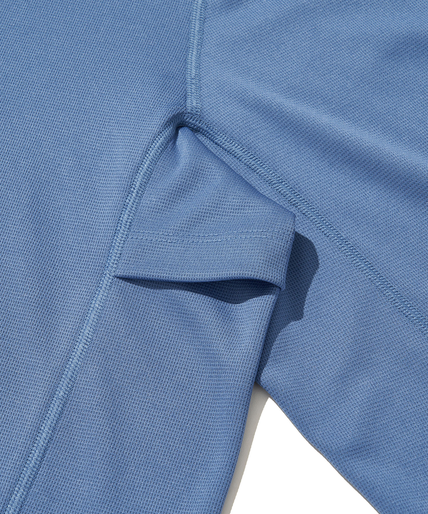 겨드랑이 아래에도 벤틸레이션 디테일을 적용해 활동 중 열 배출을 돕고, 소매 핑거 홀 디테일을 통해 보다 안정적인 착용감을 제공합니다.