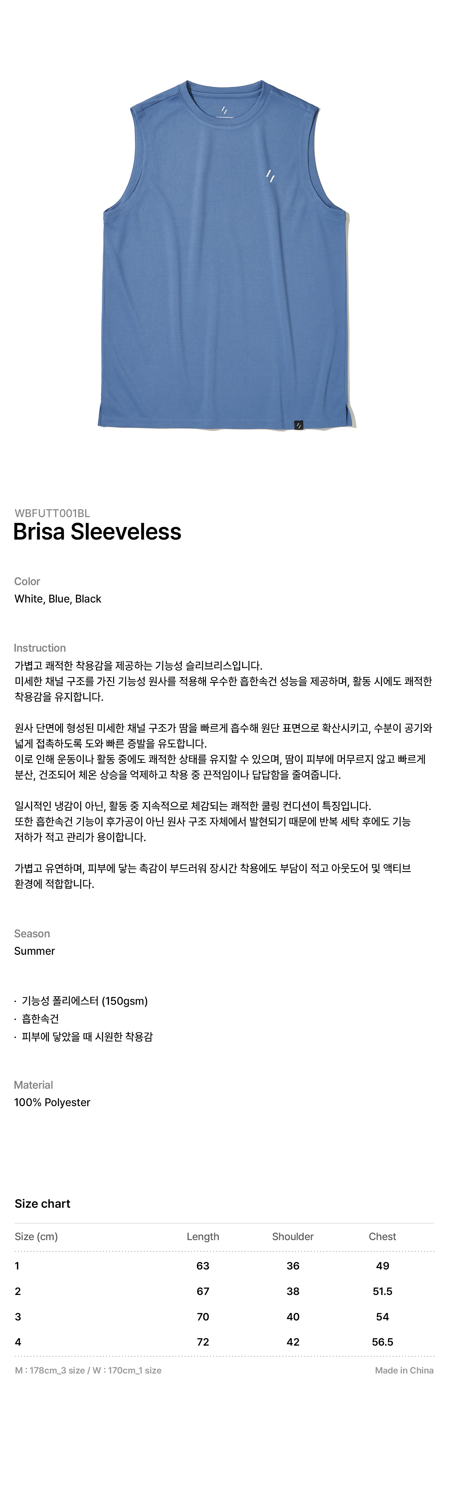 가볍고 쾌적한 착용감을 제공하는 기능성 슬리브리스입니다.