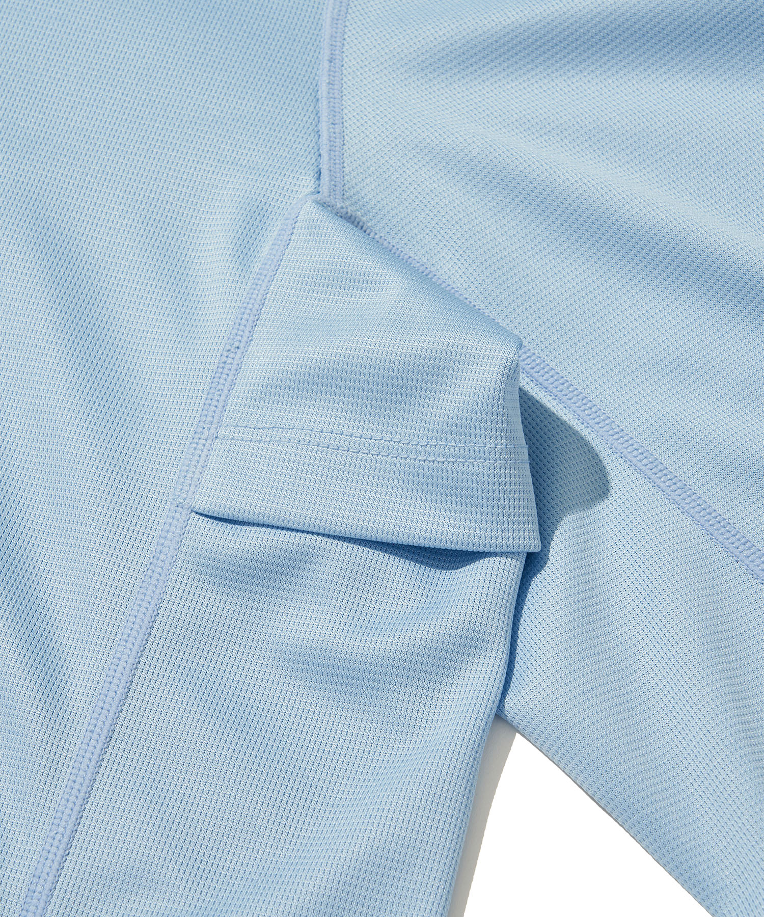 겨드랑이 아래에도 벤틸레이션 디테일을 적용해 활동 중 열 배출을 돕고, 소매 핑거 홀 디테일을 통해 보다 안정적인 착용감을 제공합니다.