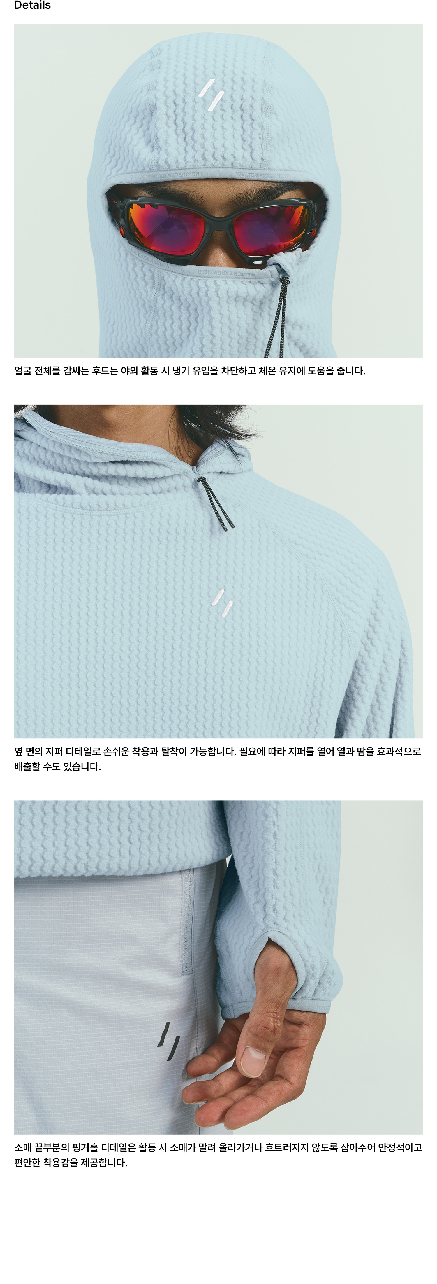 안면부까지 감싸게 높이 설계된 후드 디테일이 더해져 보온성과 실용성을 동시에 갖췄으며, 소매의 핑거홀과 겨드랑이 거셋 디테일은 활동 시 안정적인 착용감을 제공합니다. 앞뒤의 로고 자수와 재귀반사 지퍼 풀러 같은 디자인 포인트는 브랜드 아이덴티티를 표현함과 동시에 스타일리쉬한 포인트를 더해줍니다.