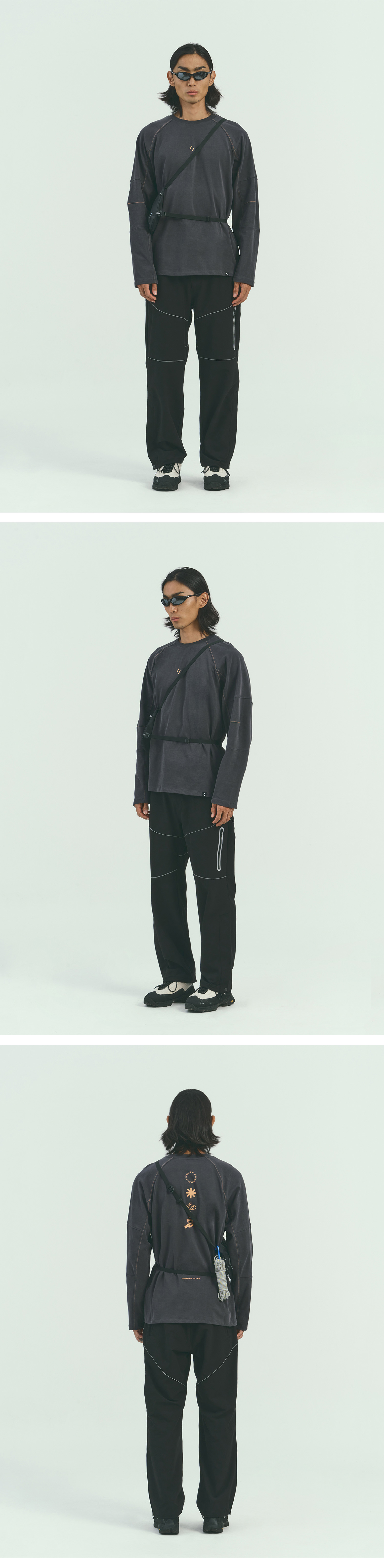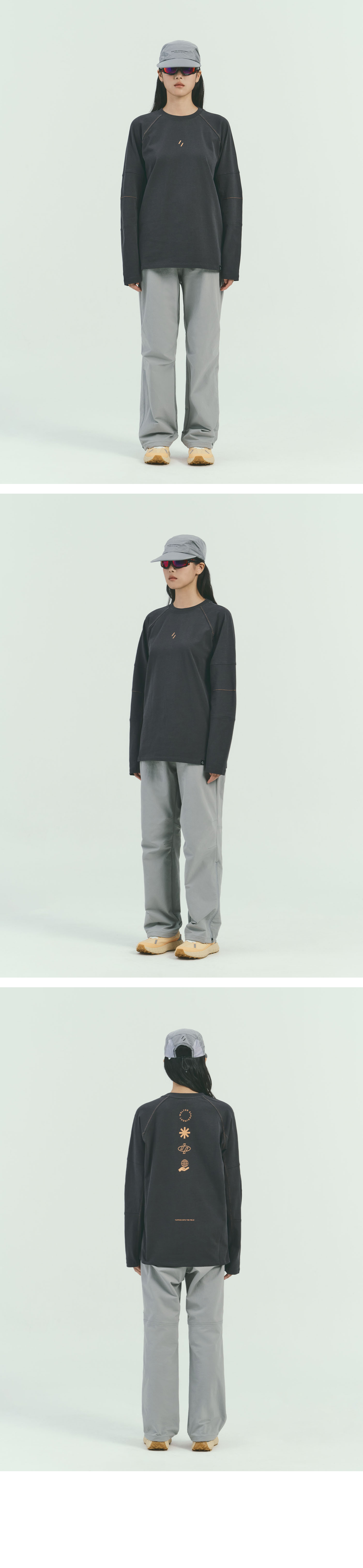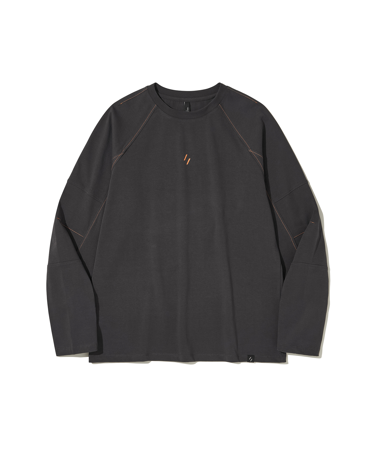 CONTRAST STITCH PANEL SLEEVES T-SHIRT_CHARCOAL