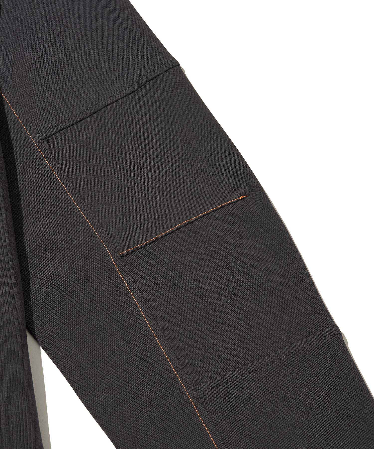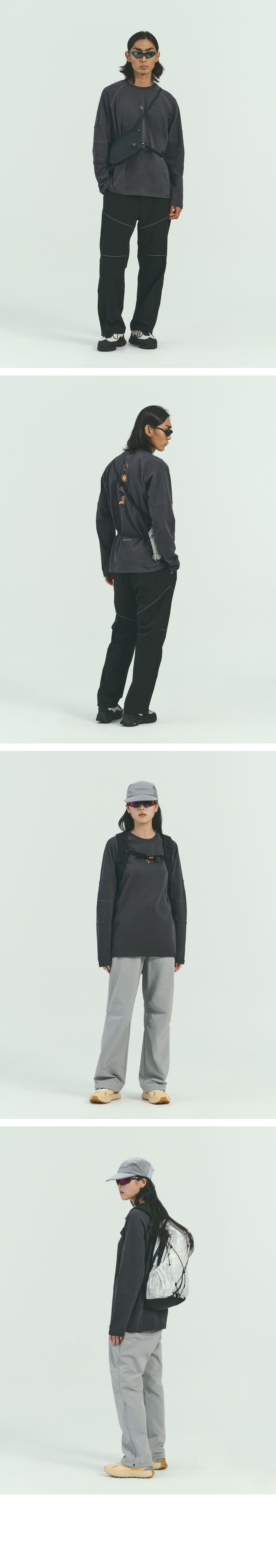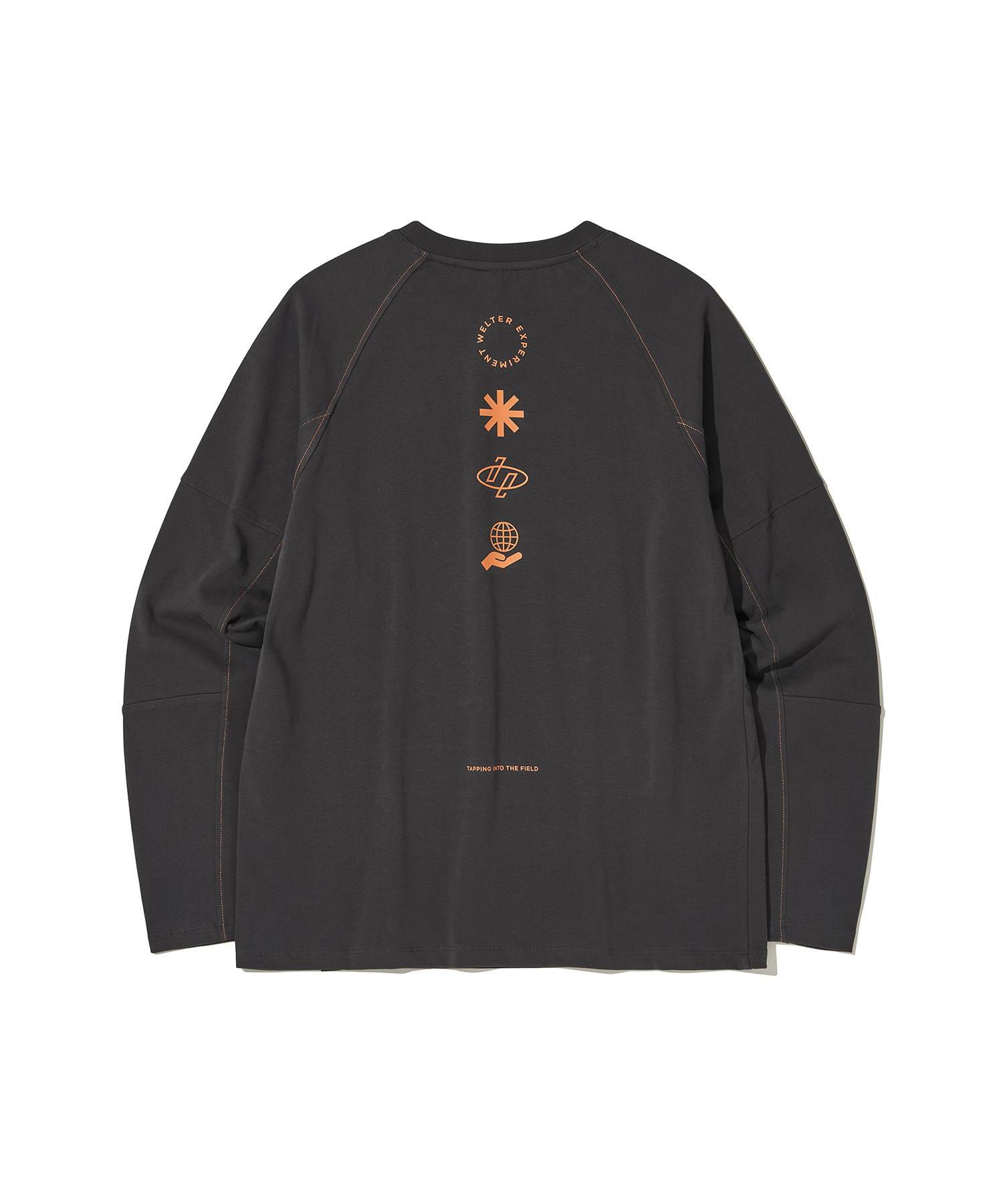 CONTRAST STITCH PANEL SLEEVES T-SHIRT_CHARCOAL
