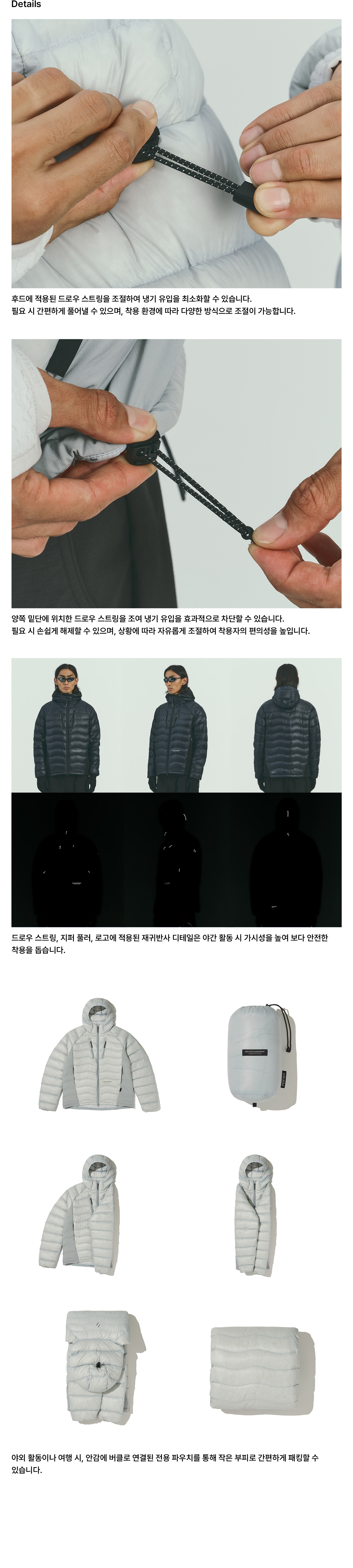 변덕스러운 날씨와 다양한 아웃도어 활동, 그리고 일상까지 모두 커버할 수 있도록 기획된 라이트 다운입니다. PERTEX® QUANTUM 리사이클 나일론 원단과 DIVO 덕다운 충전재를 사용해 가볍지만 따뜻하고, 내구성까지 겸비한 아우터로 완성했습니다. 일교차가 큰 계절이나 겨울철까지도 부담 없이 꺼내 입을 수 있으며, 작은 파우치에 패킹해 언제든 간편하게 휴대할 수 있습니다.