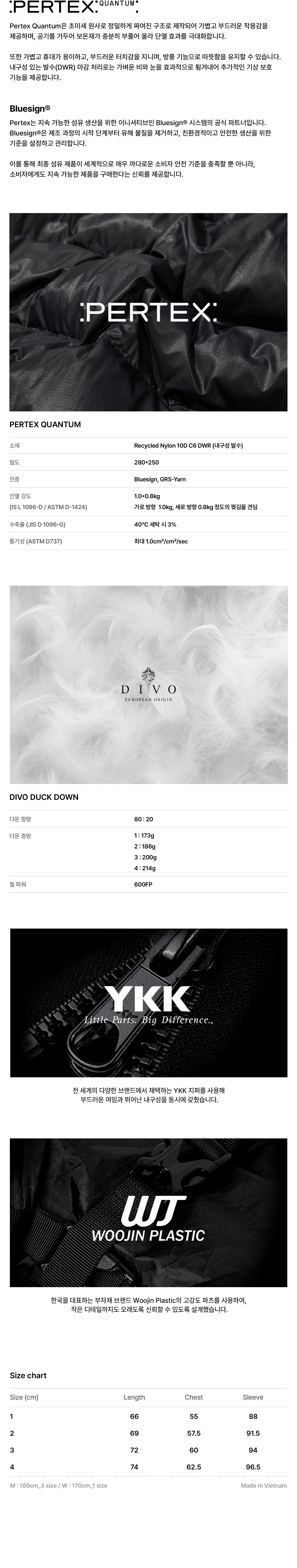 변덕스러운 날씨와 다양한 아웃도어 활동, 그리고 일상까지 모두 커버할 수 있도록 기획된 라이트 다운입니다. PERTEX® QUANTUM 리사이클 나일론 원단과 DIVO 덕다운 충전재를 사용해 가볍지만 따뜻하고, 내구성까지 겸비한 아우터로 완성했습니다. 일교차가 큰 계절이나 겨울철까지도 부담 없이 꺼내 입을 수 있으며, 작은 파우치에 패킹해 언제든 간편하게 휴대할 수 있습니다.