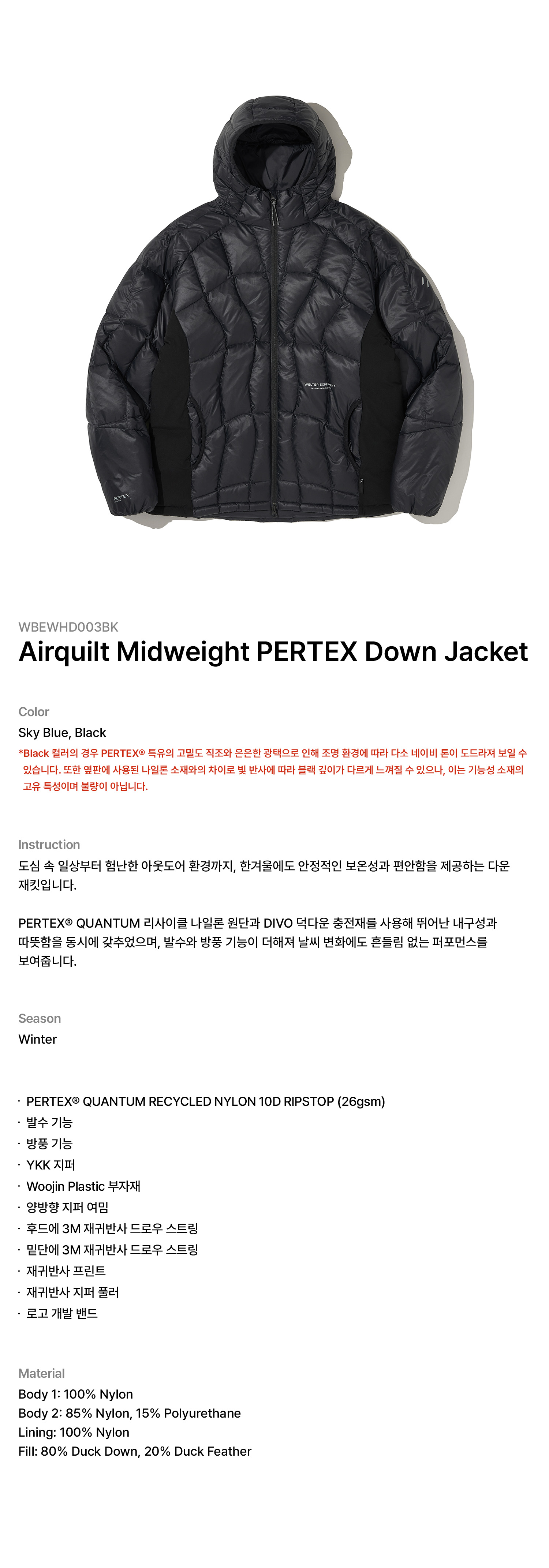 소재: Recycle Nylon 10D C6 DWR(내구성 발수)