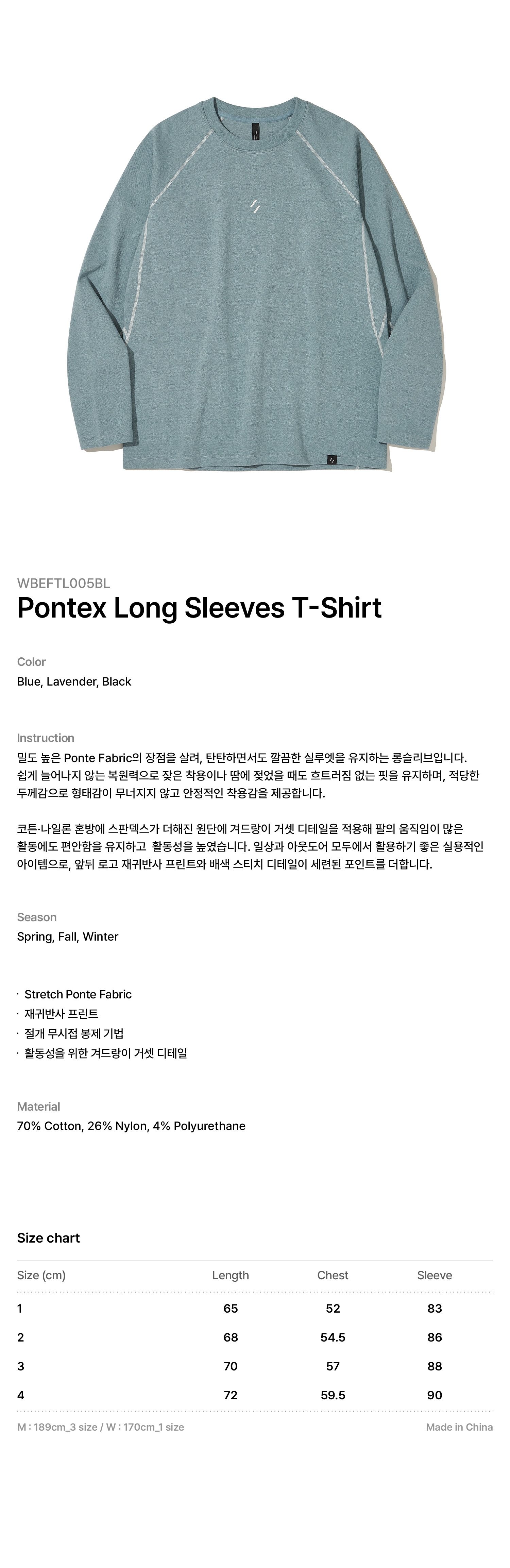 밀도 높은 Ponte Fabric의 장점을 살려, 탄탄하면서도 깔끔한 실루엣을 유지하는 롱슬리브입니다. 쉽게 늘어나지 않는 복원력으로 잦은 착용이나 땀에 젖었을 때도 흐트러짐 없는 핏을 유지하며, 적당한 두께감으로 형태감이 무너지지 않고 안정적인 착용감을 제공합니다.