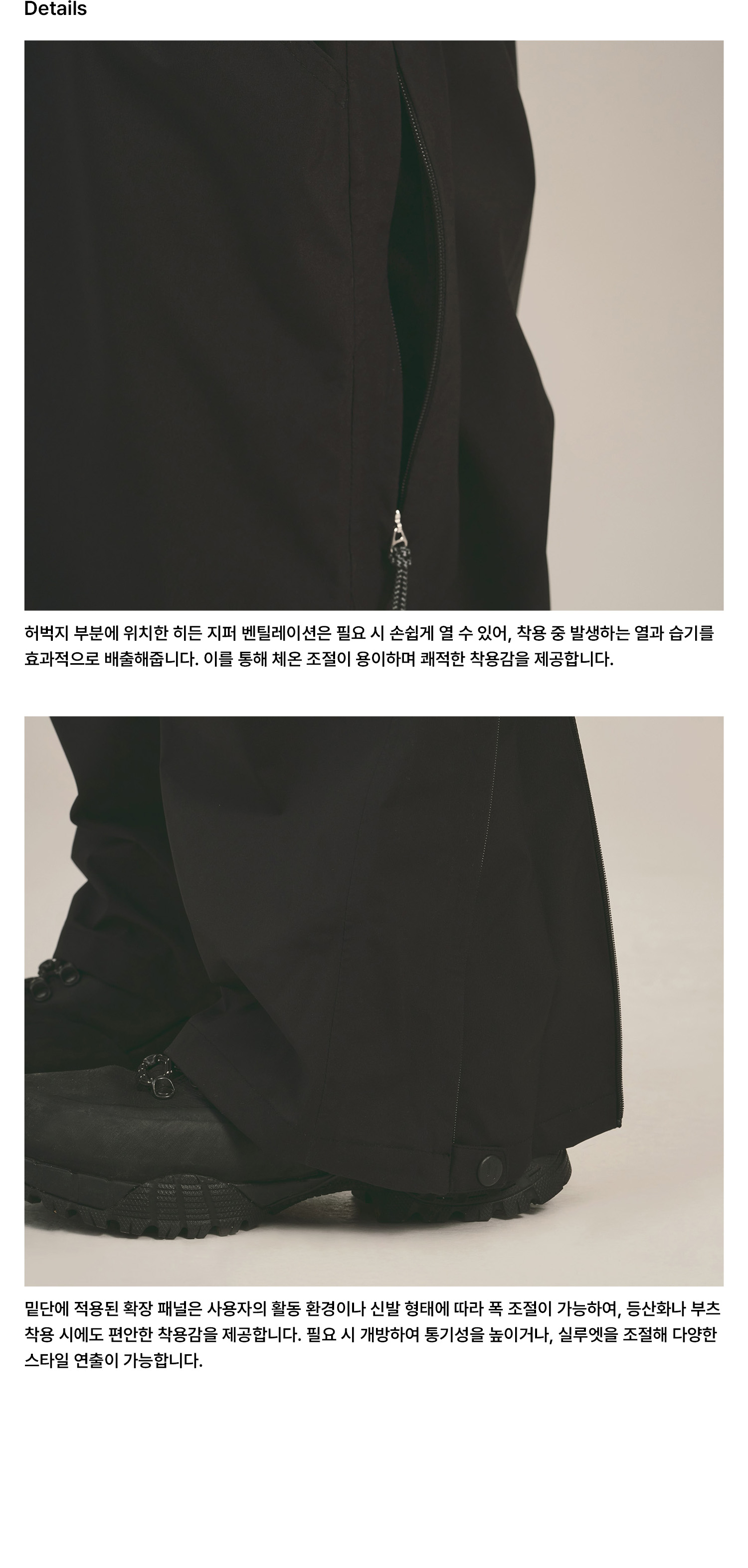 • 밑단 와이드 변형 지퍼 디테일