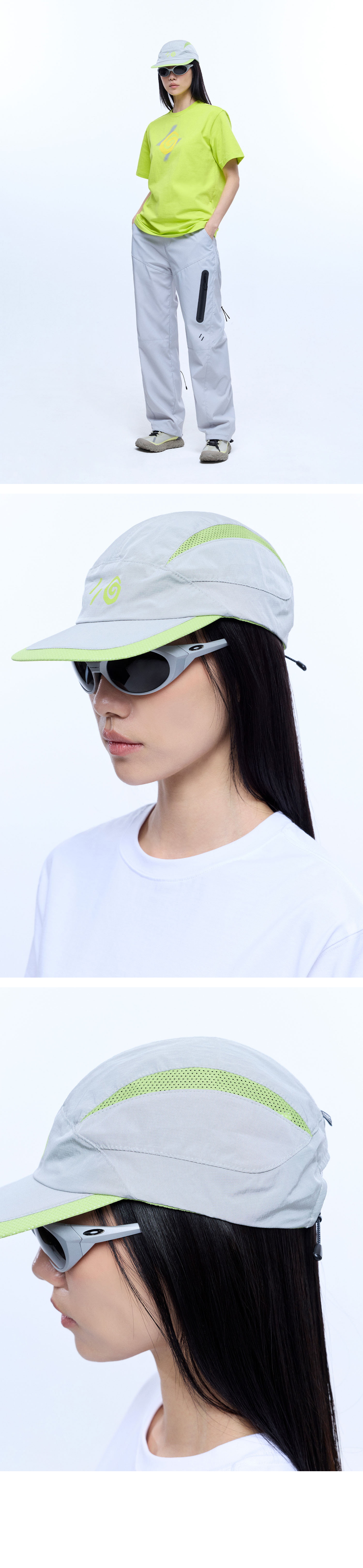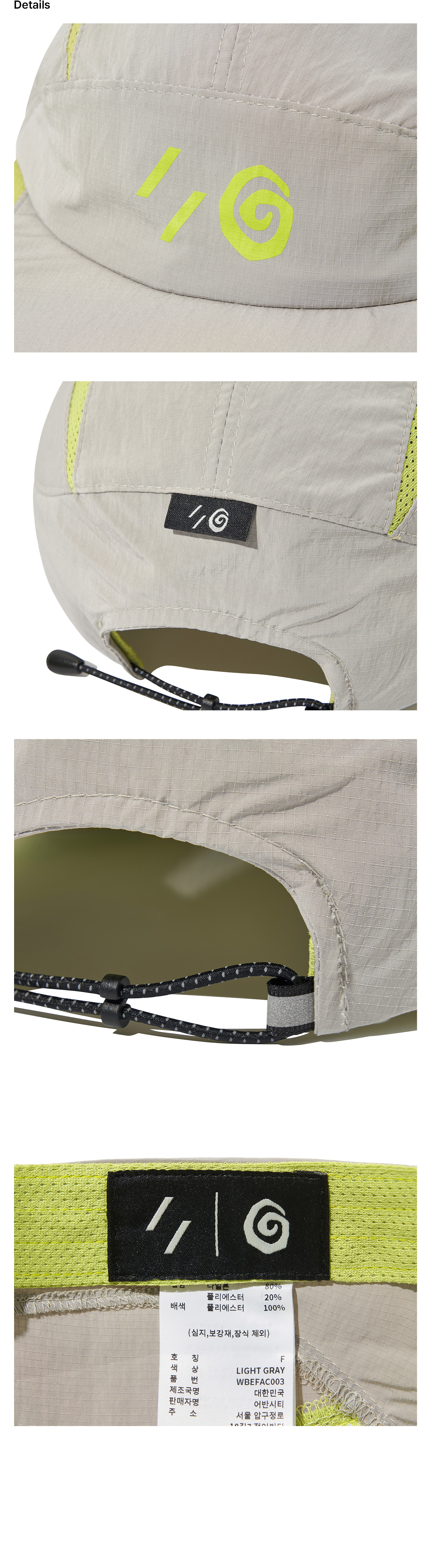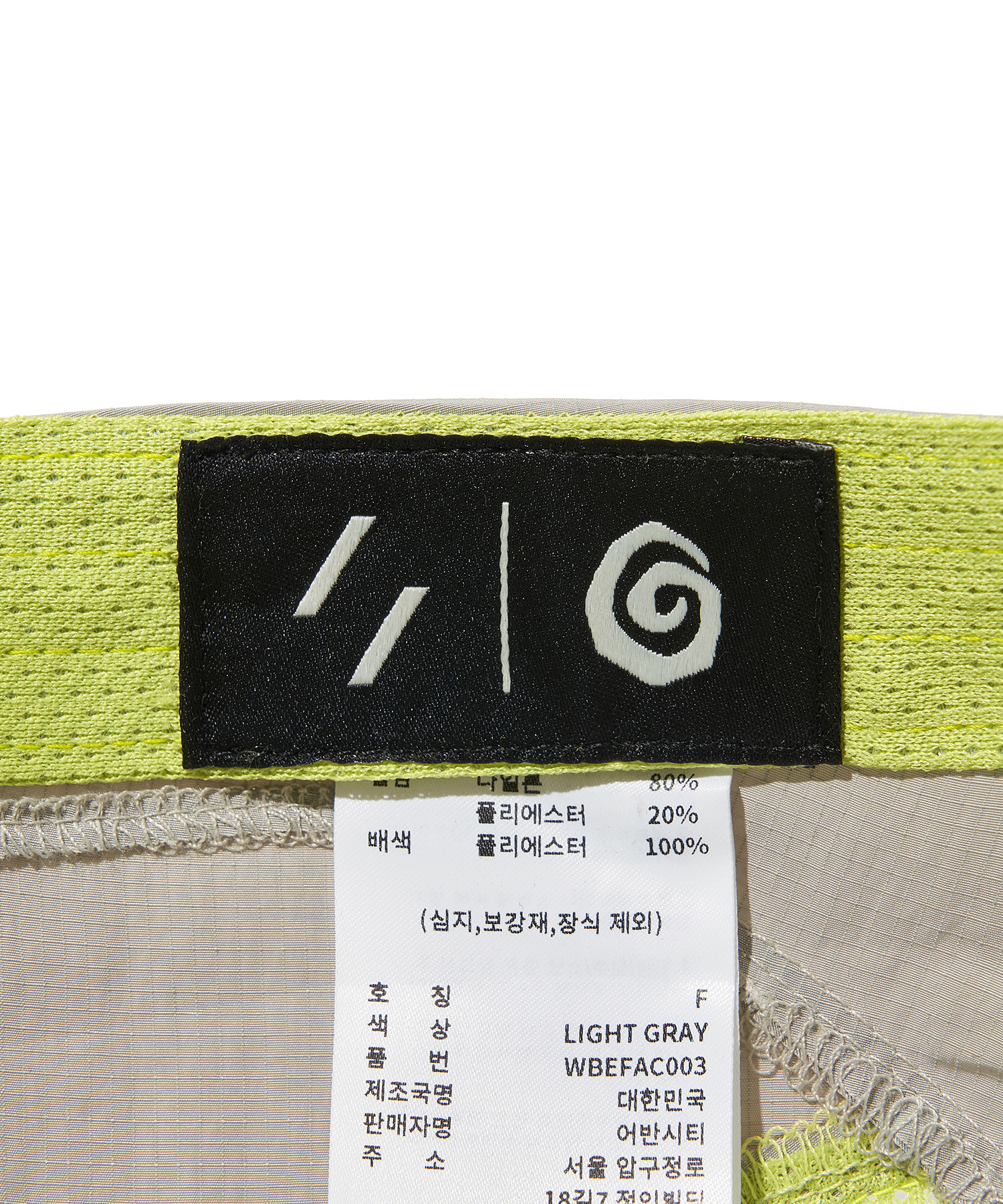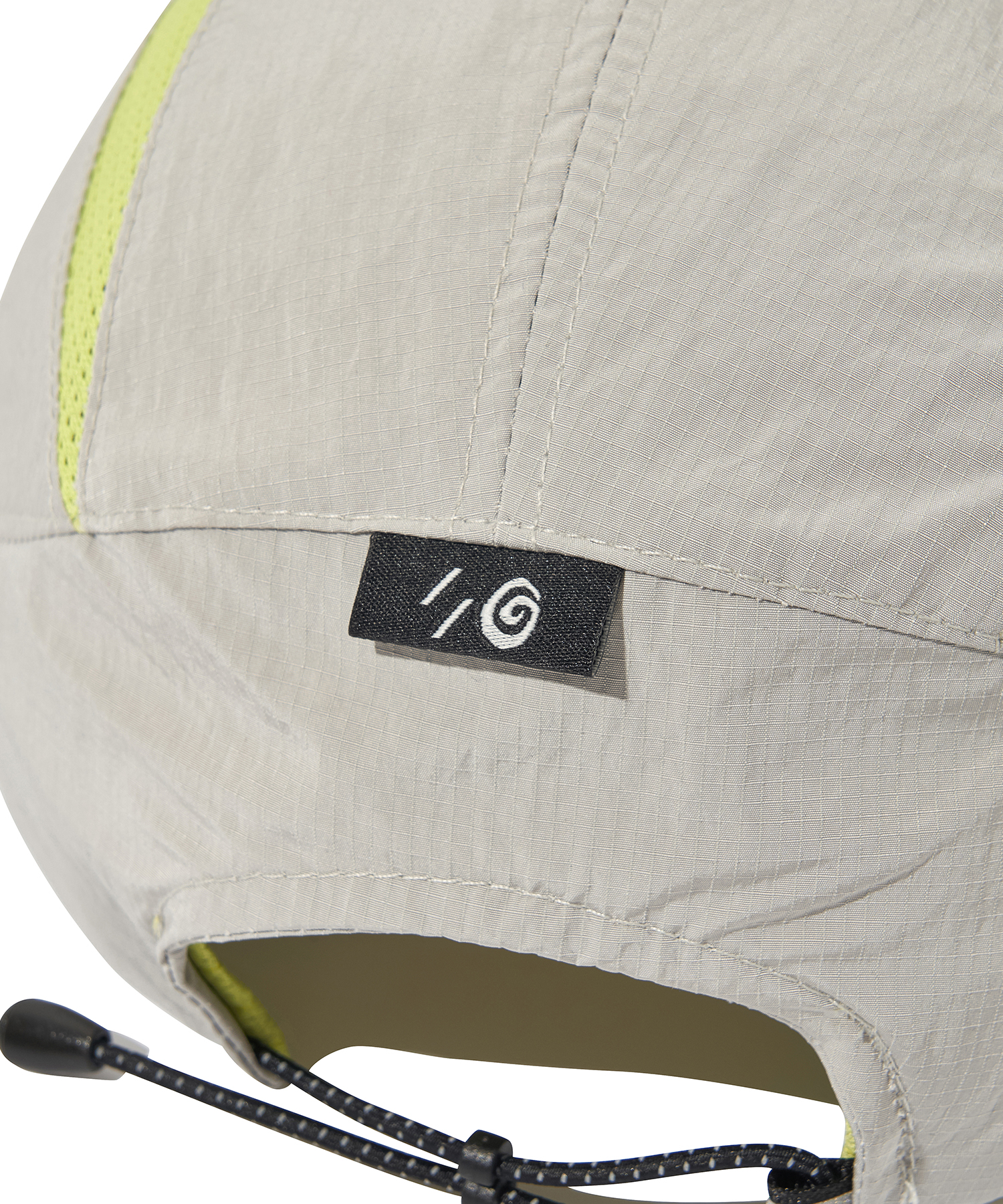 Nylon과 Polyester가 혼방된 립스탑 원단을 사용해 내구성과 형태 안정성을 높였으며, 모자 상단의 측면에는 메쉬 패널을 적용해 통기성을 강화했습니다.