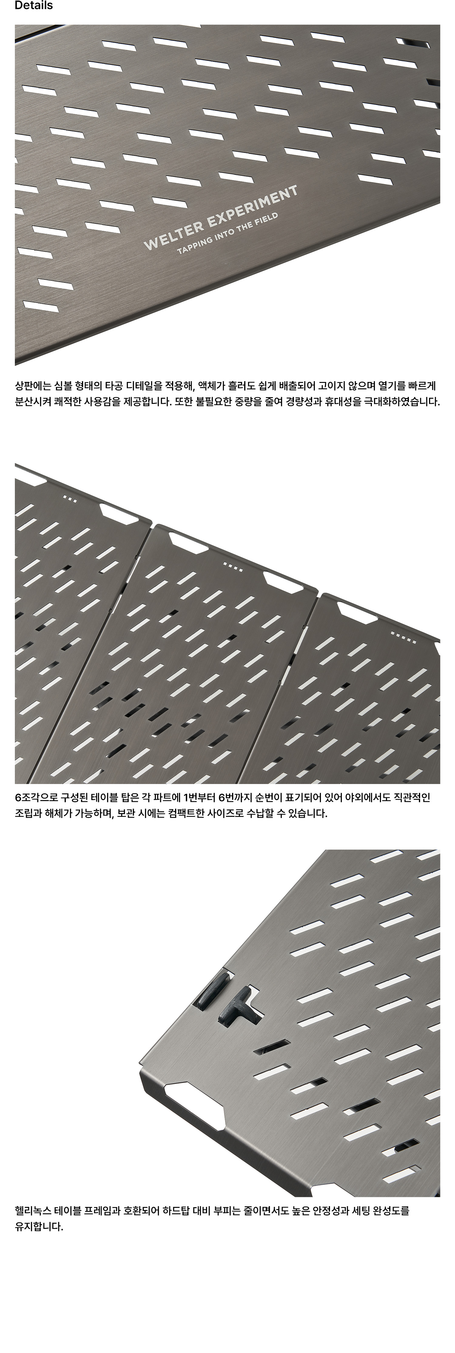 테이블탑 하드탑의 부피와 무게를 최소화하기 위해 개발된 알루미늄 합금 테이블 탑입니다.