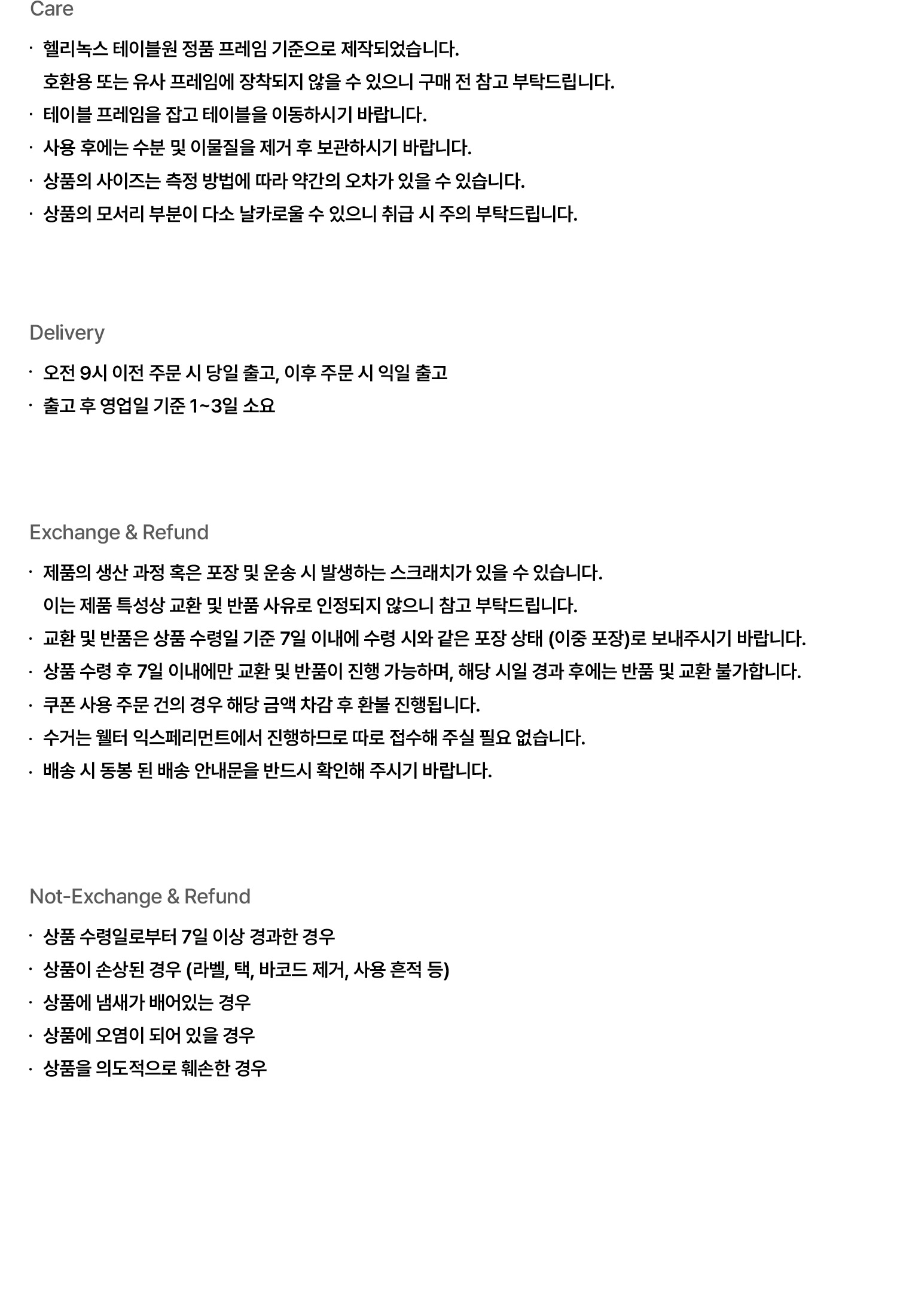 6조각으로 구성된 테이블 탑은 각 파트에 1번부터 6번까지 순번이 표기되어 있어 야외에서도 직관적인 조립과 해체가 가능하며, 보관 시에는 컴팩트한 사이즈로 수납할 수 있습니다.