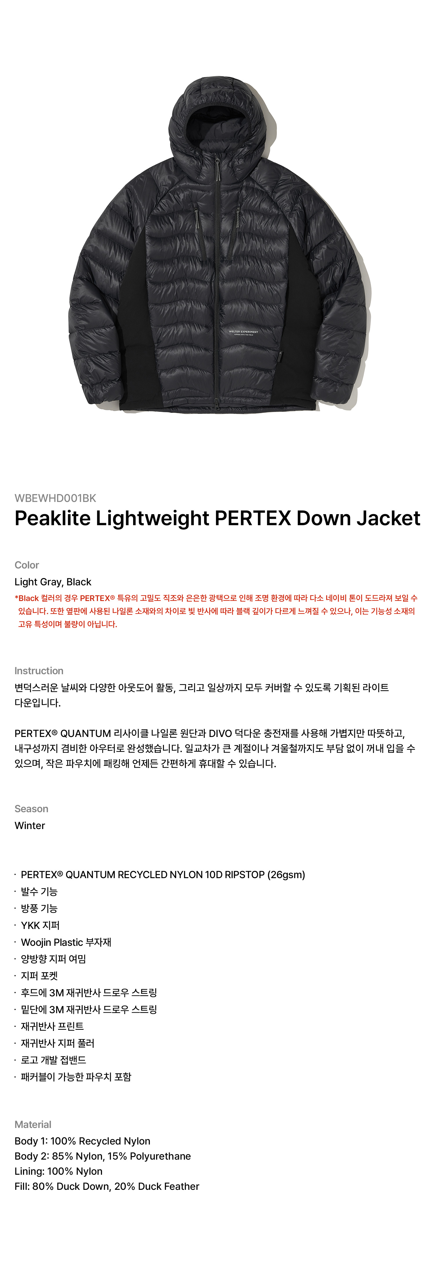 소재: Recycle Nylon 10D C6 DWR(내구성 발수)